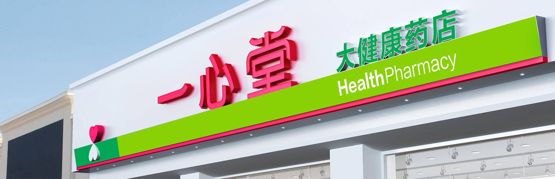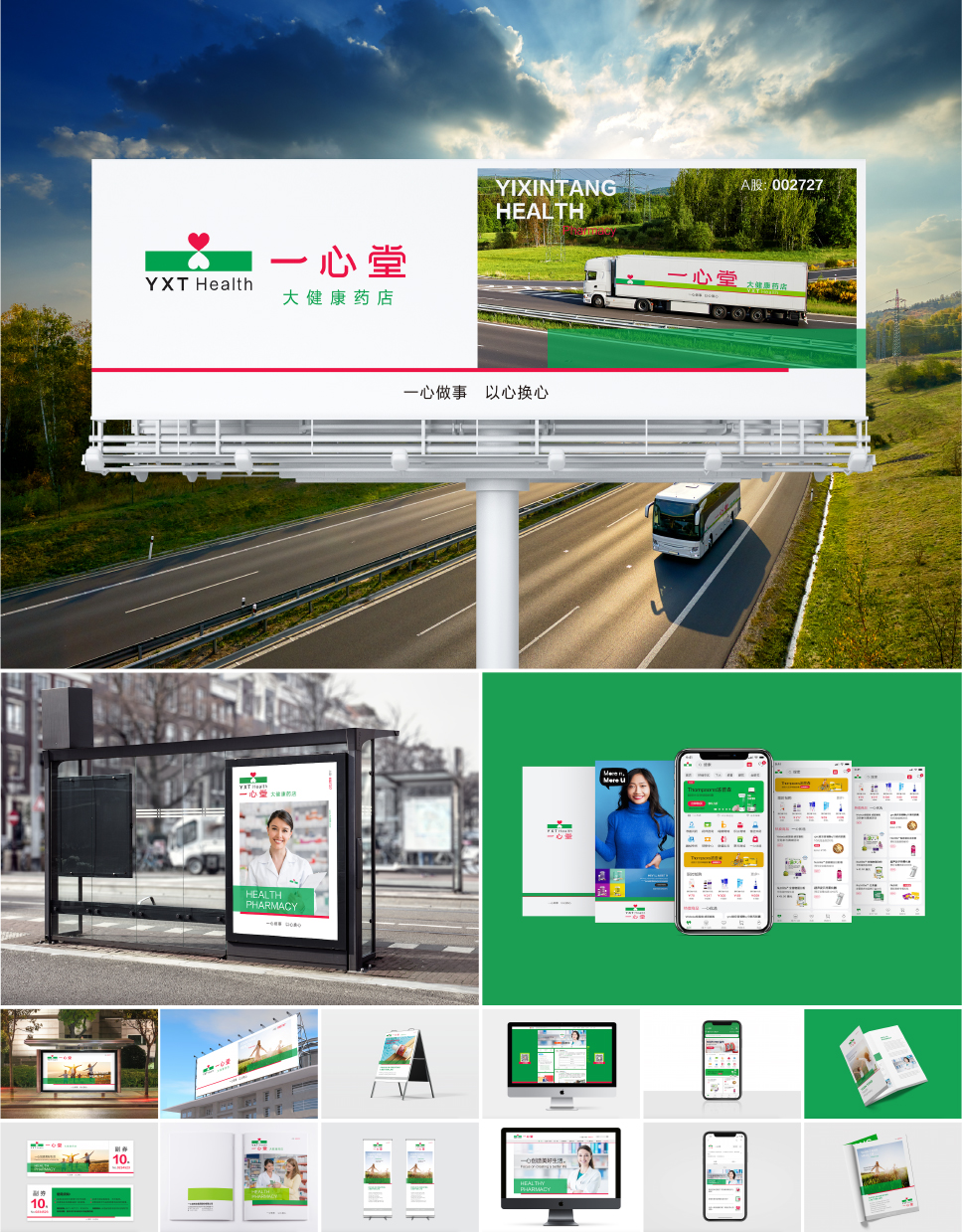 集團(tuán)與藥店沿用綠色和紅色的基調(diào),綠色是健康,紅色是愛(ài),一心堂用愛(ài)守護(hù)健康,把健康平臺(tái)的概念最直觀地傳遞給消費(fèi)者。