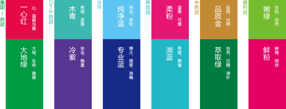 李華清色彩戰(zhàn)略部經(jīng)過(guò)精準(zhǔn)分析與測(cè)算,為一心堂構(gòu)建一整套順應(yīng)人性、心理及情緒偏好的戰(zhàn)略色彩體系。
