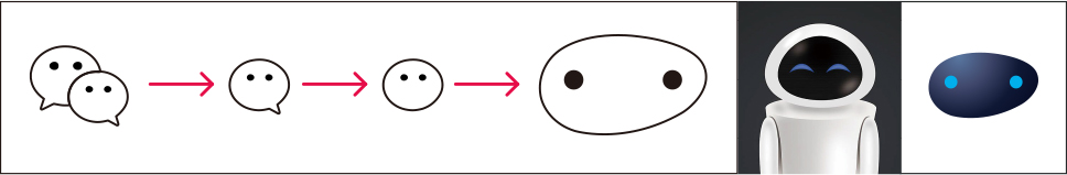 面部是建立交流的窗口,有了面部就等于有了溝通能力,面部塑造對(duì)于一個(gè)形象而言至關(guān)重要。我們?cè)谖⑿艑?duì)話框獲得了靈感,從這個(gè)對(duì)話框圖標(biāo)來(lái)去演化我們品牌ip的面部形象。