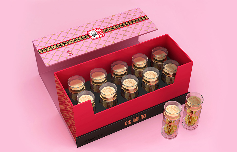 我們走訪了市面上眾多擁有同類產(chǎn)品的藥店,發(fā)現(xiàn)藥店中的這類禮盒都需要打開外盒陳列內(nèi)部產(chǎn)品,這時,內(nèi)部禮盒反而成為了視覺第一接觸點。而那些常見的或圓或方的普普通通的透明亞克力盒,不能體現(xiàn)產(chǎn)品的價值,因此需要重新對包裝造型進(jìn)行開發(fā)設(shè)計。