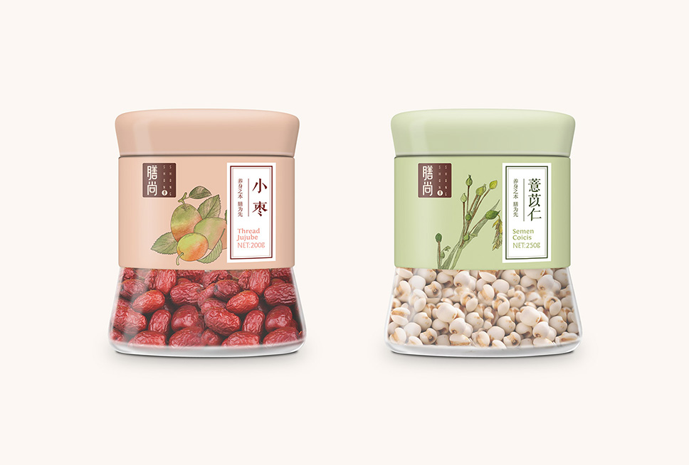 在同類產(chǎn)品還都是普通塑料圓柱瓶的時(shí)候,膳尚的包裝造型可以說是非常特別了。這個(gè)趣味十足的設(shè)計(jì)不僅成功與用戶建立情感連接,方便用戶最快形成品牌印象;同時(shí),敦厚的造型展示產(chǎn)品容量滿滿,滿足用戶心理對(duì)于產(chǎn)品“量”的需求。