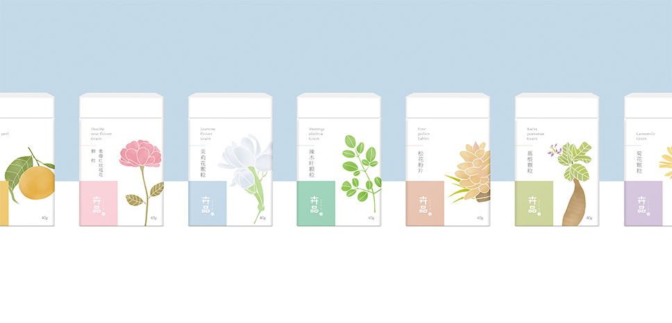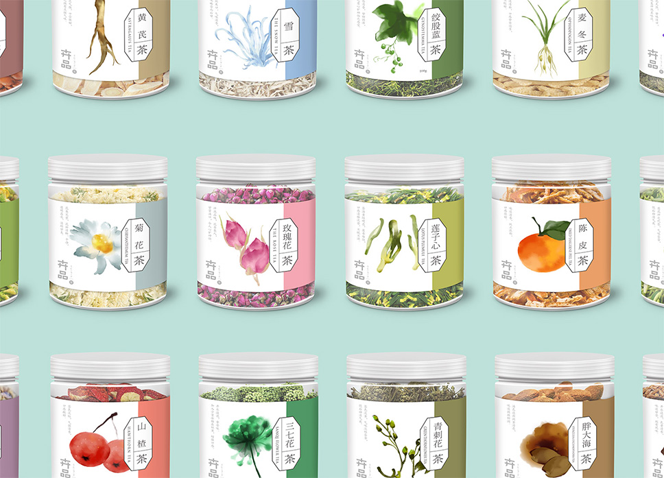 李華清圍繞由品牌理念所推導(dǎo)出的價(jià)值主張視覺化內(nèi)容,也就是自然養(yǎng)生的概念元素。運(yùn)用水彩插畫的風(fēng)格,繪制出產(chǎn)品使用的形態(tài)。花朵在水中搖曳的唯美瞬間,化為紙上慢慢暈開的筆墨,猶如產(chǎn)品溫和滋潤(rùn)我們的身心。唯美、溫潤(rùn),散發(fā)著清新的自然之味。傳遞出產(chǎn)品精致的氣質(zhì),詮釋出植物茶飲的自然清新,為傳統(tǒng)茶飲注入新鮮活力。