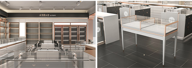 李華清為同仁堂參茸專賣店色彩定位采用了深灰、白和玫瑰金色搭配,使整體店面既有富麗堂皇之氣場(chǎng),也有清新脫俗之雅韻。一方面與北京同仁堂傳統(tǒng)店面形象區(qū)分開來(lái),另一方面,在傳承傳統(tǒng)文化的同時(shí)也對(duì)同仁堂文化和形象都進(jìn)行了升華,使其店面更具視覺(jué)特點(diǎn)和識(shí)別性傳統(tǒng)出透露出的現(xiàn)代和時(shí)尚,符合未來(lái)人群的審美情趣。